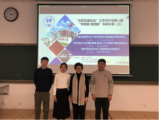 为推动学院科研创新工作发展,拓宽师生科研视野,在研究生院(学科建设办公室)及辽宁省药学研究生创新与学术交流中心的支持下,11月25日下午,Beat365中文官方网站在播馨楼107教室举办了“沈药无涯论坛”之学术沙龙第14期“学思维 树创新”科研分享活动。制药工程与环境科学系教师吴昊、徐爽及康程铭分别进行了精彩报告,会议由化学工程与技术学科主席侯晓虹教授主持。线上线下共200余人参加了此次会议。