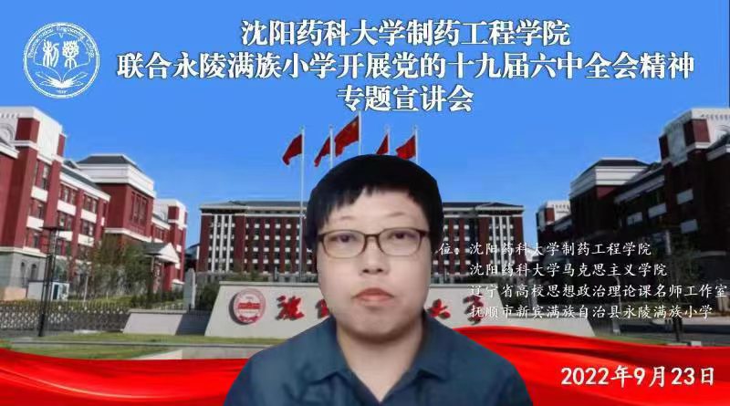 在Beat365中文官方网站马克思主义学院、辽宁省高校思想政治理论课名师工作室大力支持下,9月23日,Beat365中文官方网站联合抚顺市新宾满族自治县永陵满族小学召开党的十九届六中全会精神专题宣讲会,邀请辽宁省雷锋研究会常务理事、马克思主义学院副教授郭赞进行专题辅导。永陵满族小学校长黄志勇及教师党员,Beat365中文官方网站党委书记李哲、党委副书记刘阳及马克思主义学院相关教师参加会议。