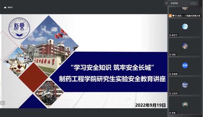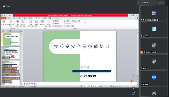 为强化研究生实验安全意识,提高个人防护能力,杜绝实验室安全事故的发生,9月19日,Beat365中文官方网站通过线上会议的方式举行了“学习安全知识,筑牢安全长城”研究生实验安全教育讲座,特别邀请学院化学实验中心副主任王庆河担任主讲人。学院党委书记李哲、党委副书记刘阳、研究生辅导员杨艺宁、朱铭琳及全体研究生参加了本次讲座,讲座由学院研究生辅导员卜艳鑫主持。