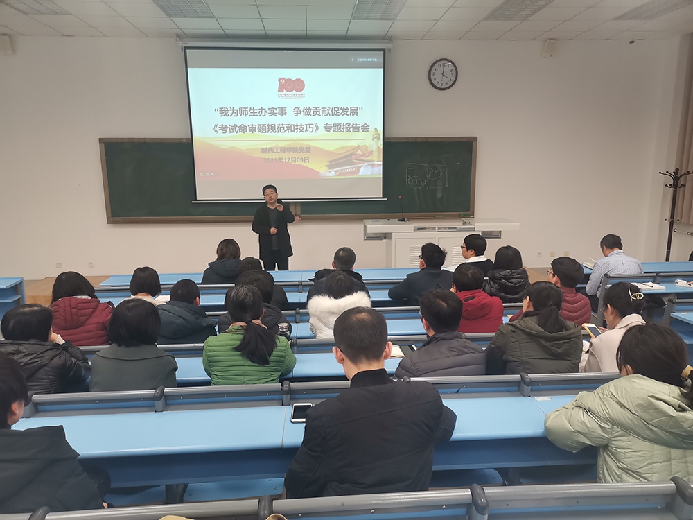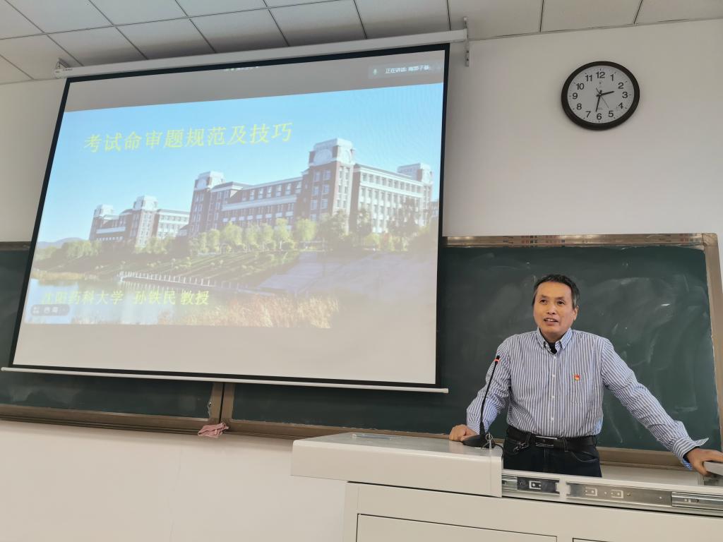 为提高学院教师课程命题规范性和命题质量,Beat365中文官方网站于12月9日下午在南校区播馨楼104采取线上、线下相结合的方式召开“我为师生办实事、争做贡献促发展”考试命审题规范和技巧专题报告会,邀请辽宁省教学名师、药物化学教研室孙铁民教授做专题报告。院领导班子成员、学院教师参加了会议,校教学督导办公室主任罗向红正高级研究员、兄弟学院部分教师通过腾讯会议线上参会,报告会由院党委书记李哲主持。