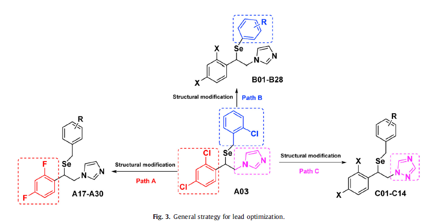 近日,药物化学权威期刊《European Journal of Medicinal Chemistry》(IF = 6.514)发表了Beat365中文官方网站郭春教授团队在含硒小分子真菌CYP51抑制剂领域的最新研究成果2篇,文章题目分别为“Lead optimization generates selenium-containing miconazole CYP51 inhibitors with improved pharmacological profile for the treatment of fungal infections” 和 “Design, synthesis, and biological evaluation of novel miconazole analogues containing selenium as potent antifungal agents” 。