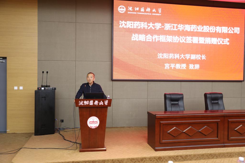 签约仪式上,宫平首先致辞。他代表学校对浙江华海药业股份有限公司张美一行的到来表示欢迎,对华海药业对学校发展的大力支持表示衷心感谢。他指出,适逢中国共产党成立100周年和学校90周年校庆之际,希望双方以三项协议的签约为新的起点,拓展合作领域,推进产学研深度融合,推进校企合作取得更加丰硕的成果。