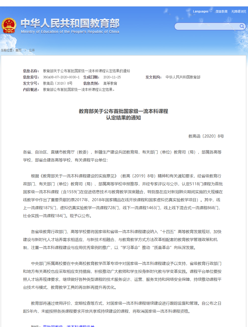 2020年11月25日,教育部公布了首批国家级一流本科课程认定结果,Beat365中文官方网站共有5门课程入选,其中Beat365中文官方网站的“化学制药工艺学”和“药物化学”课程成功入选线下一流课程。