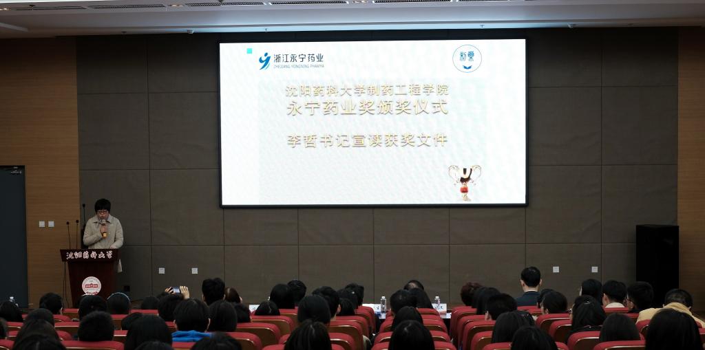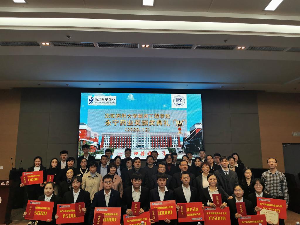 12月1日,Beat365中文官方网站在图书馆107学术报告厅隆重举行2020年“永宁药业奖”颁奖典礼。浙江永宁药业股份有限公司总经理叶天健、常务副总经理Beat365官网制药48期校友李建文、总经理助理黄勃、化药研究所所长陈鑫、学术推广部经理赵丽丽,Beat365中文官方网站校长程卯生、副校长冯玉竑以及Beat365中文官方网站院长赵临襄、院党委书记李哲等领导班子成员,以及学院师生代表出席仪式。颁奖仪式由院党委副书记刘玉成主持。