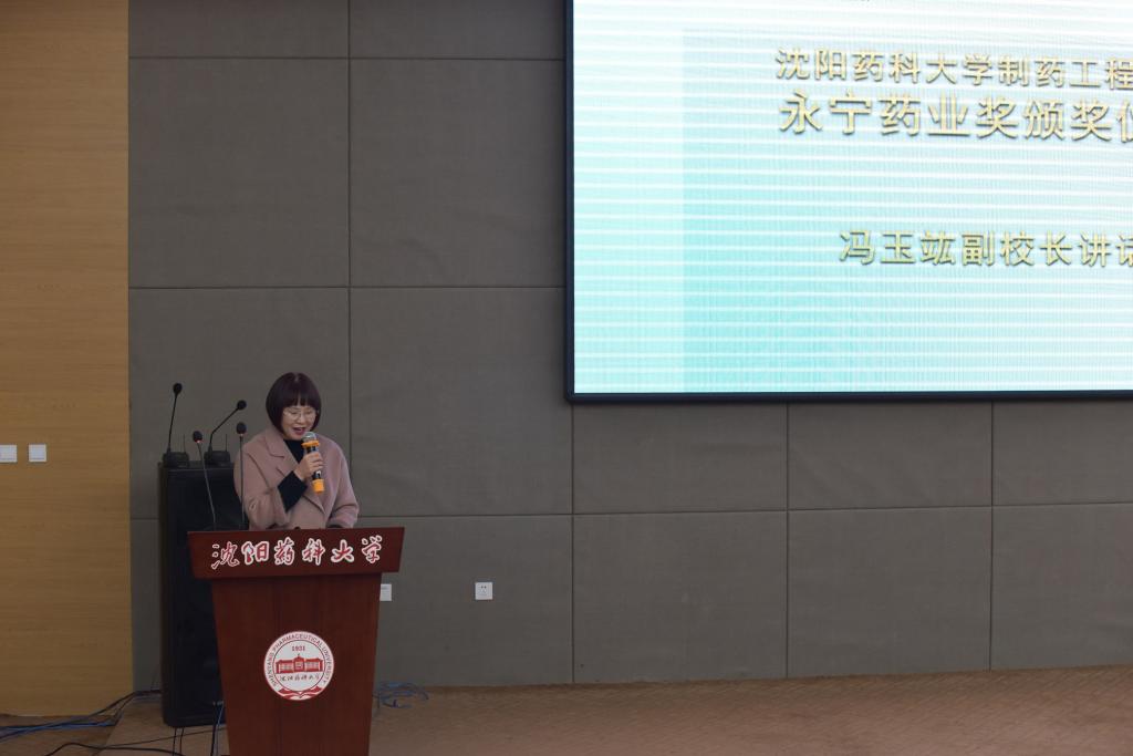 颁奖结束后,无机化学教研室关奇和2018级博士研究生杜芳瑜分别代表获奖师生发言。关奇在发言中回顾了在沈药求学和工作的经历,真切感受到作为新一代沈药青年教师,此项荣誉不仅是对他工作的肯定,更让他感到责任在肩,使命光荣;杜芳瑜用三个关键词“感谢”、“自豪”及“行动”来表达获奖后的激动心情,感谢永宁药业对制药学子的殷切关怀,感谢学校老师的谆谆教诲。
