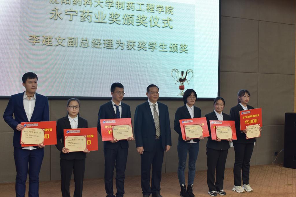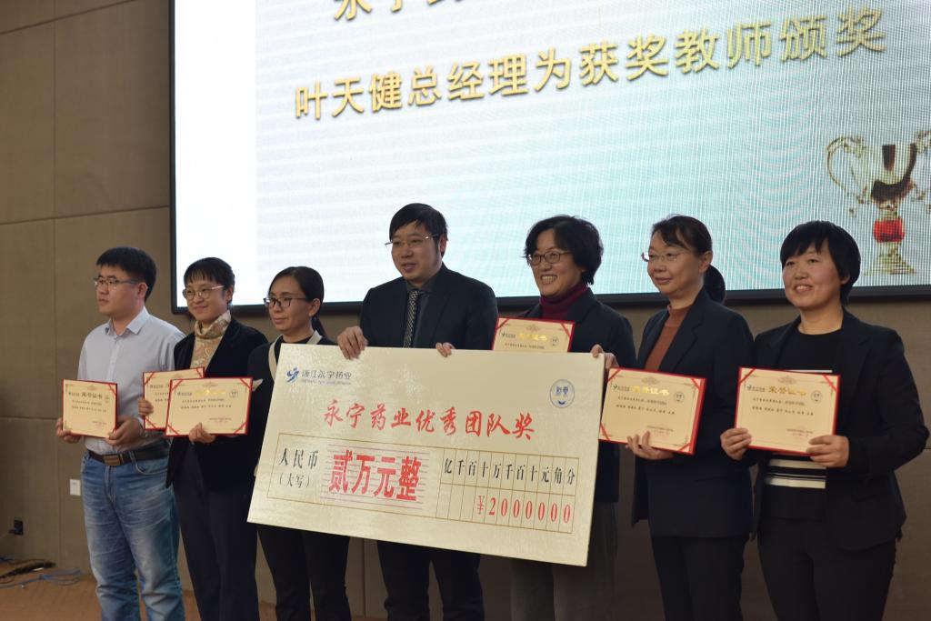接下来举行隆重的颁奖仪式,永宁药业常务副总经理李建文为获得永宁药业“优秀本科生奖”、“优秀硕士生奖”、“优秀博士生奖”、“体育专项奖”的学生颁奖。永宁药业总经理叶天健为“工程教育认证”团队、“环境科学”团队、“学生党建工作”团队颁发“永宁药业优秀团队奖”;为刘洋等六名优秀中青年教师颁发“永宁药业优秀中青年教师奖”。