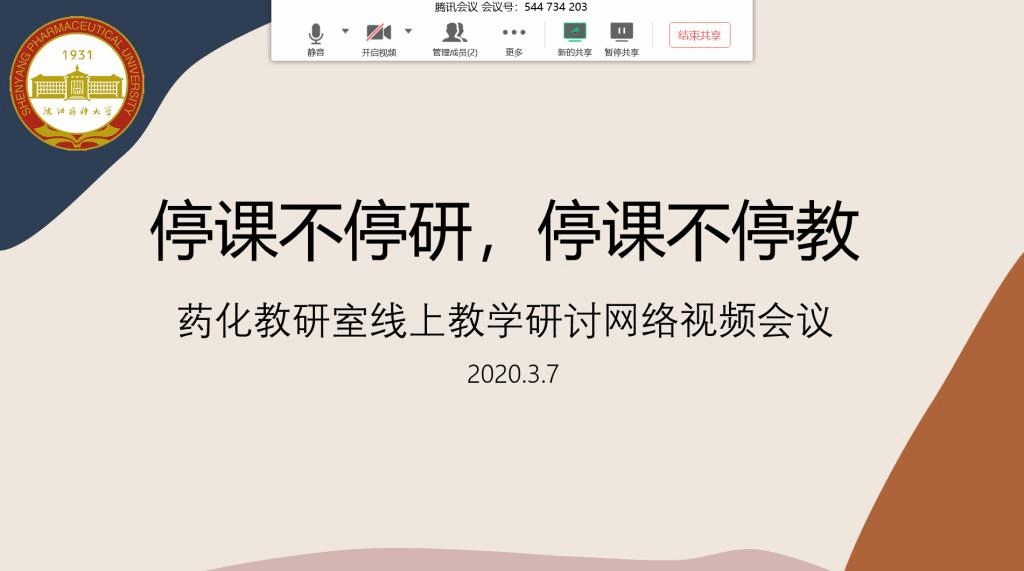 在新冠肺炎疫情防控工作的关键时期,Beat365中文官方网站药物化学教研室积极响应教育部和校党委关于“停课不停教,停课不停学”的号召,于3月7日上午应用腾讯会议平台,召开网络视频工作会议,切实落实学校关于“扎实做好线上教学工作”的总体要求,研讨本科生理论课程网络教学的相关要点。会议由教研室主任刘丹教授主持,教研室26位一线教师全部出席会议。