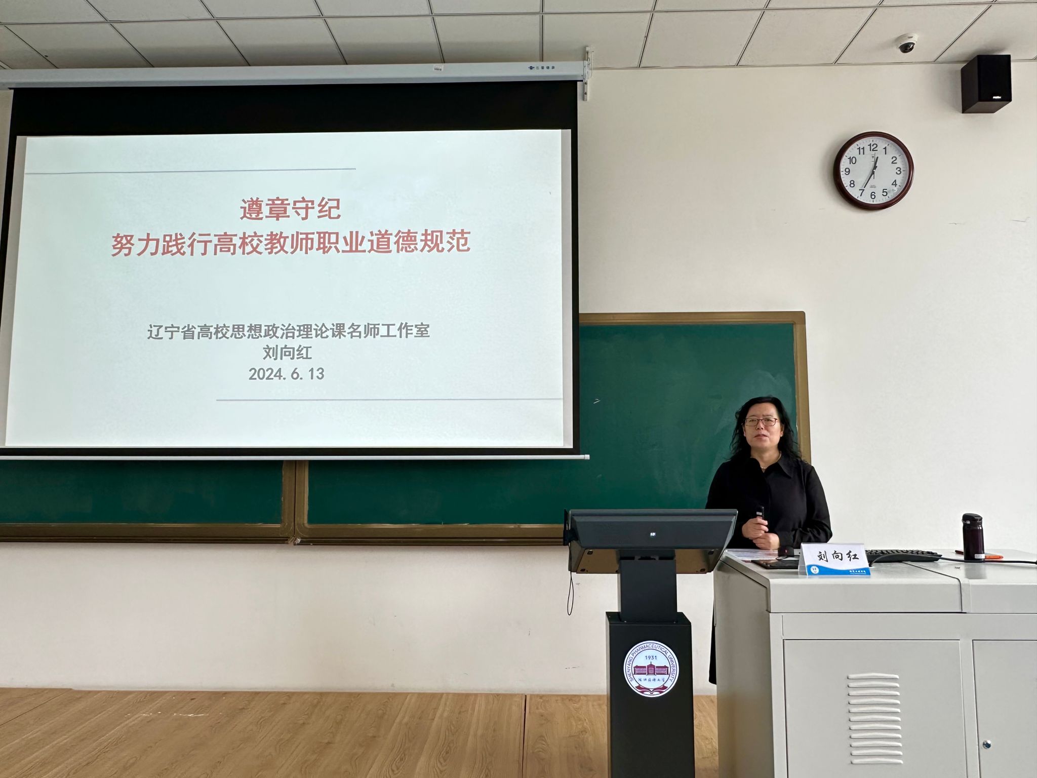 为深入开展党纪学习教育,Beat365中文官方网站于6月13日在南校区播馨楼204召开师德师风专题培训会,邀请了Beat365中文官方网站党委党校教务长、党委组织部副部长(兼)、辽宁省高校思想政治理论课名师工作室刘向红教授作题为“遵章守纪,努力践行高校教师职业道德规范”专题讲座。学院领导班子成员、学院教师参加了会议,培训会由学院党委书记李哲主持。