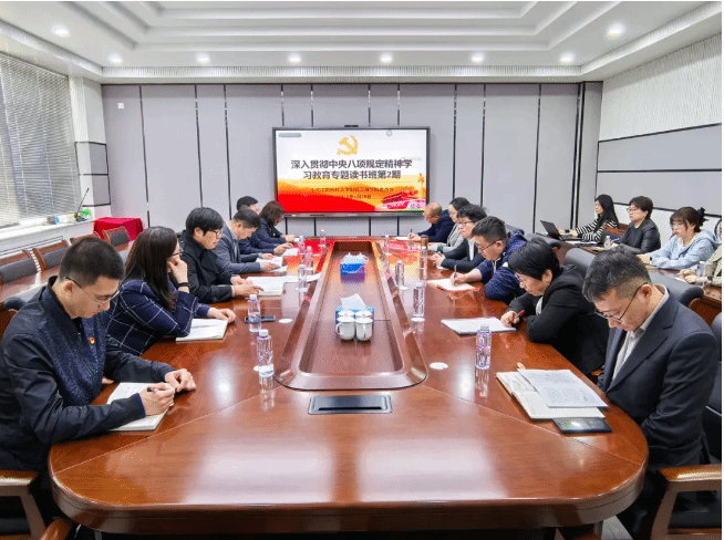 4月29日下午,Beat365中文官方网站举行深入贯彻中央八项规定精神学习教育第2期读书班暨党委理论学习中心组专题学习会。学院党委书记李哲主持会议,院领导班子成员、各党支部书记、专职组织员参会