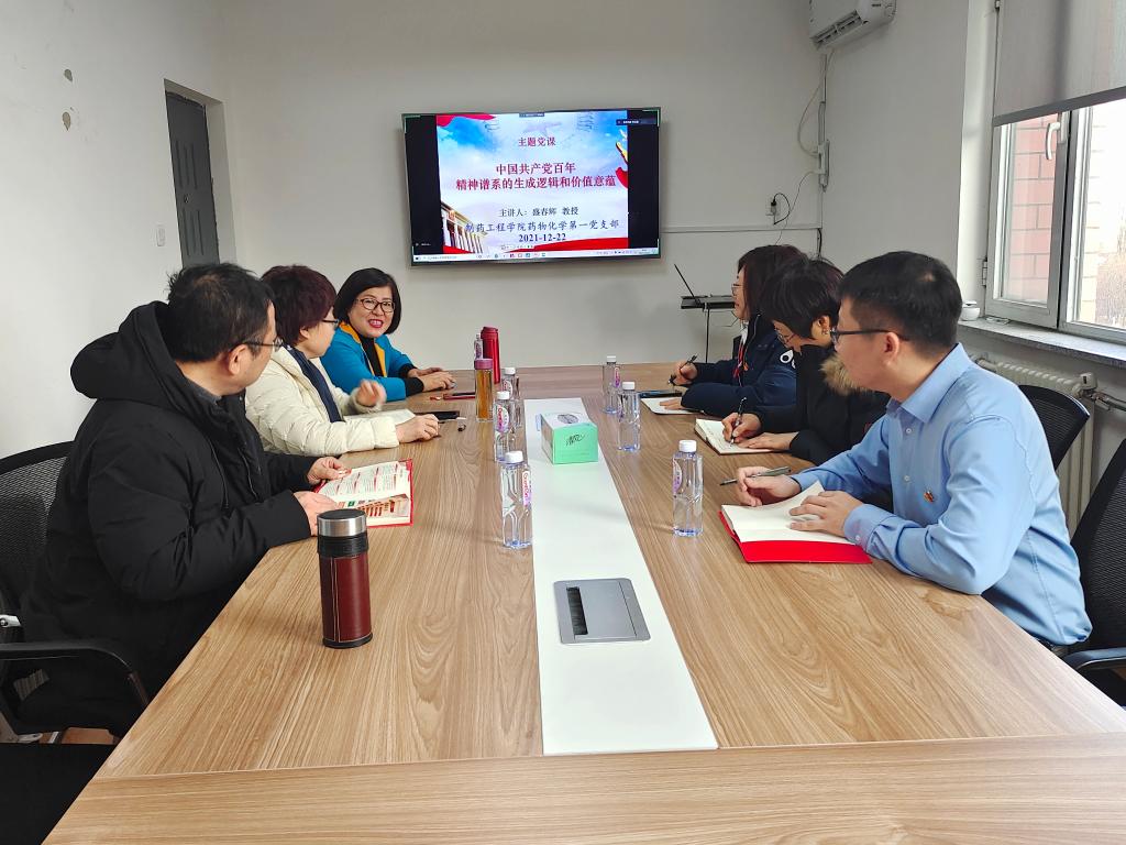 Beat365中文官方网站药物化学第一党支部开展“中国共产党百年精神谱系的生成逻辑和价值意蕴”专题党课