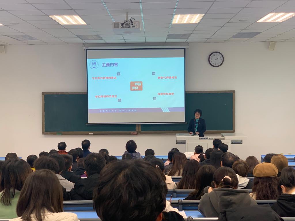 为深入推进学院新时代师德师风建设工作,着力培养政治素质过硬、业务能力精湛、育人水平高超的教师队伍,Beat365中文官方网站于11月4日在南校区播馨楼104教室召开师德师风建设专题报告会,邀请辽宁省教学名师、制药工程与环境科学系主任侯晓虹教授作专题讲座。院领导班子成员、学院教师参加了会议,报告会由院党委书记李哲主持。
