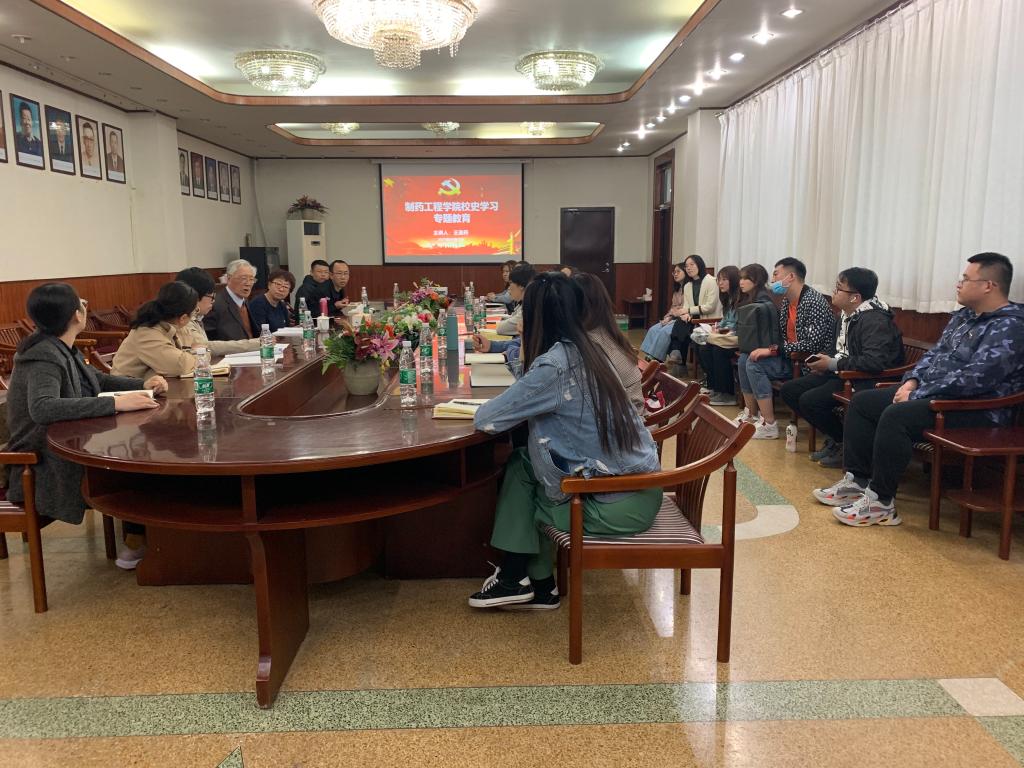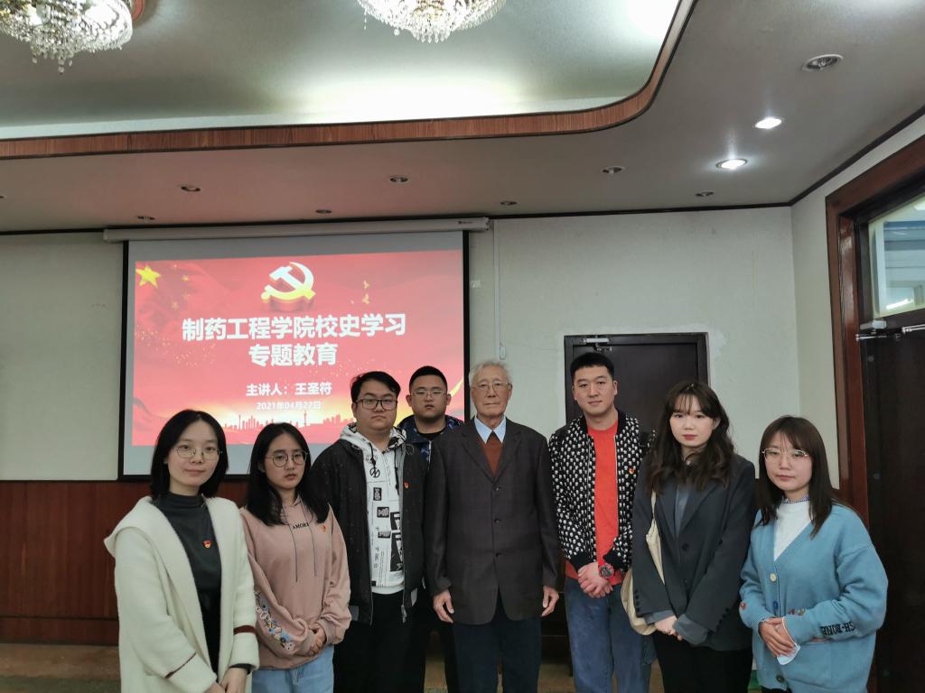 为扎实推进党史学习教育,引导学院师生学党史、铭校史、知校情,传承沈药红色基因,弘扬沈药精神,4月22日,在校本部图书馆二楼会议室,Beat365中文官方网站党委举办“校史馆里追忆峥嵘岁月、专题党课尽抒沈药情怀”专题党课,特邀Beat365官网27期校友、原Beat365中文官方网站副校长、曾在Beat365官网有机教研室任教的王圣符教授为学院党委理论中心组(扩大)师生上党课。Beat365中文官方网站院长赵临襄、党委书记李哲、副书记刘玉成、教工及学生党支部书记、全体辅导员及首批全国高校“百个研究生样板党支部”——Beat365中文官方网站博士研究生党支部党员代表参加活动。