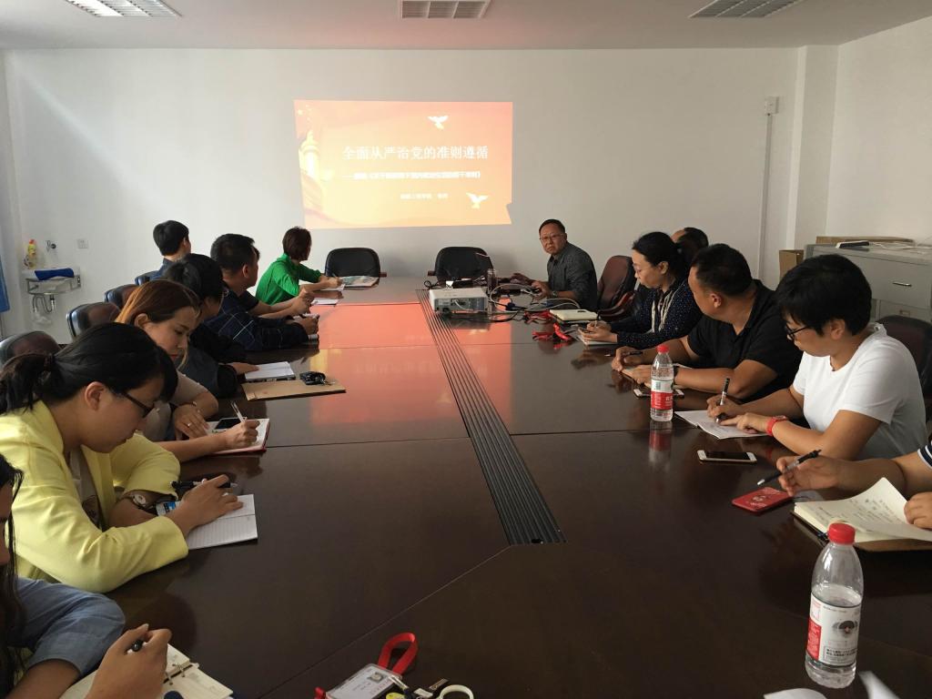 首先,张伟书记以PPT的形式做中心发言,张伟书记以“全面从严治党的准则遵循”为题,从“党内政治生活的实践与探索是《准则》的源泉、严肃党内政治生活是解决党内存在问题的重要途径、党内政治生活必须以党章为根本遵循、坚定理想信念是加强和规范党内政治生活的首要任务、坚持党的基本路线是加强和规范党内政治生活的根本保证、加强和规范党内政治生活的重要目的是坚决维护党中央权威、严明党的政治纪律是加强和规范党内政治生活的重要内容、保持党同人民群众的血肉联系是加强和规范党内政治生活的根本要求、坚持民主集中制原则是加强和规范党内政治生活的制度保障等九方面详细解读了《关于新形势下党内政治生活的若干准则》。接下来,张伟书记结合Beat365官网党建工作的实际情况,逐条解读了辽委办发〔2017〕15号-《关于严格党的组织生活制度的意见》的文件精神。